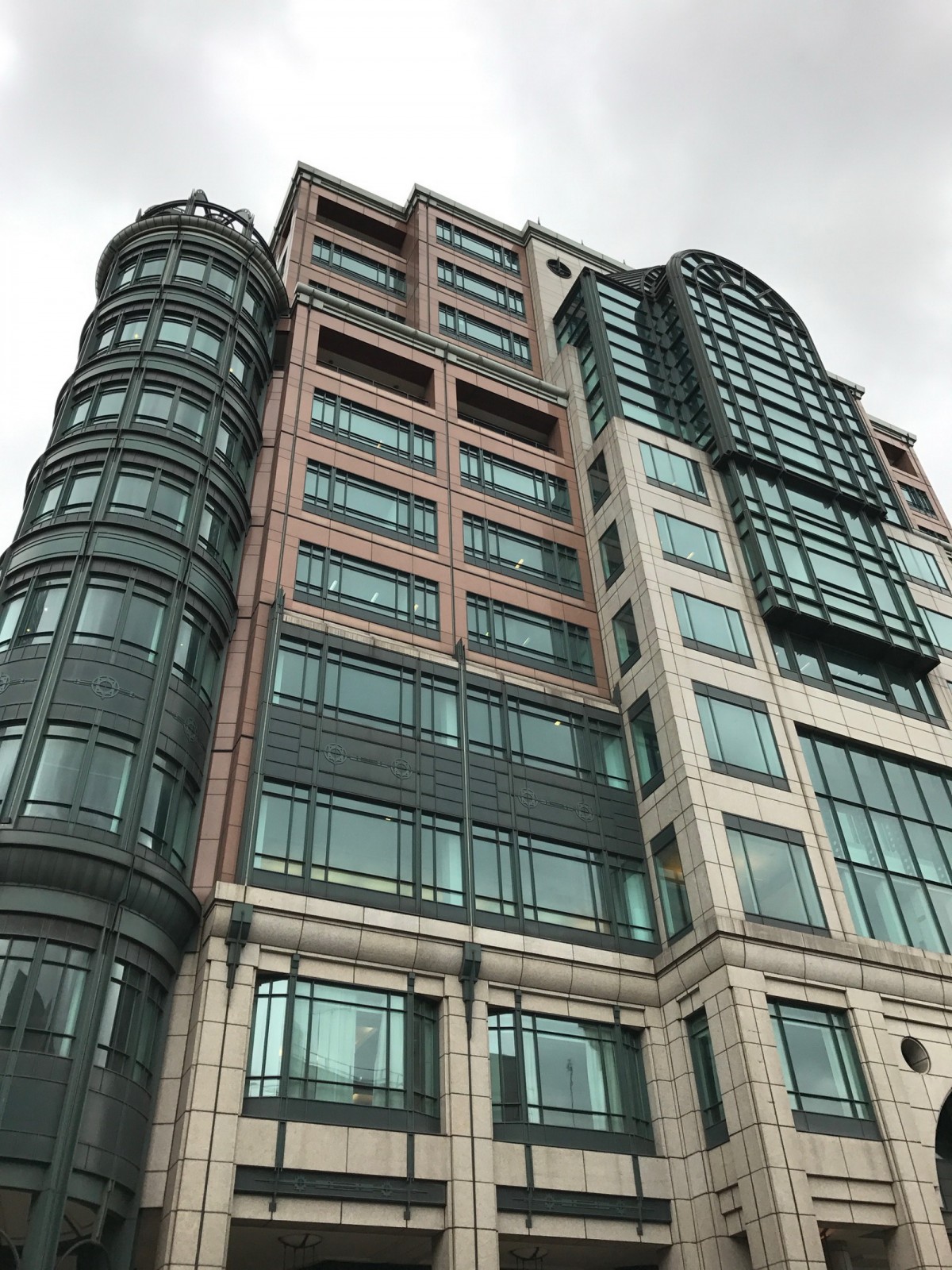 Designed by Skidmore, Owings & Merrill and constructed in 1987, Bishopsgate is a mixed-use office and retail complex with 135 Bishopsgate anchoring the south end of the property. The exterior cladding consists of polished and honed granite veneer panels anchored off-site to a prefabricated steel strong-back frame with field-installed glazed aluminum windows set into punched openings between each panel. The remaining fenestration consists of glazed aluminum storefront and window wall with painted aluminum exterior cladding. The roofing consists of a ballasted, protected membrane roof with precast concrete pavers and washed river rock over rigid insulation and reinforced liquid applied polyurethane membrane.