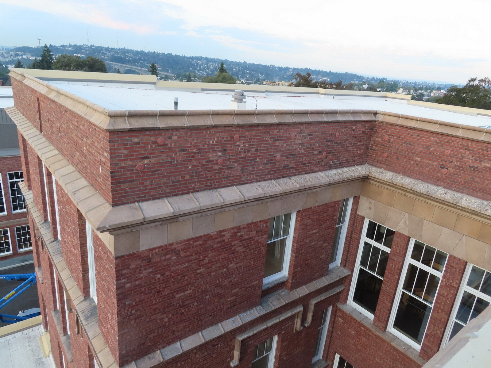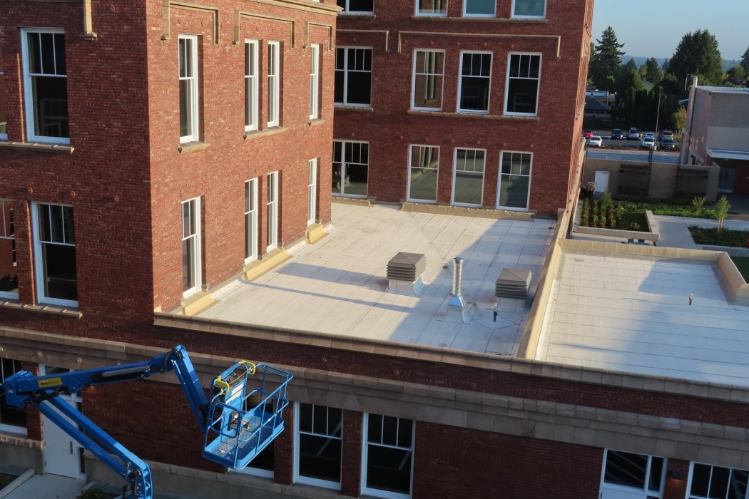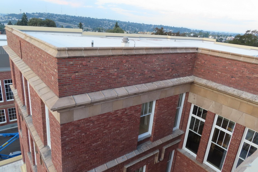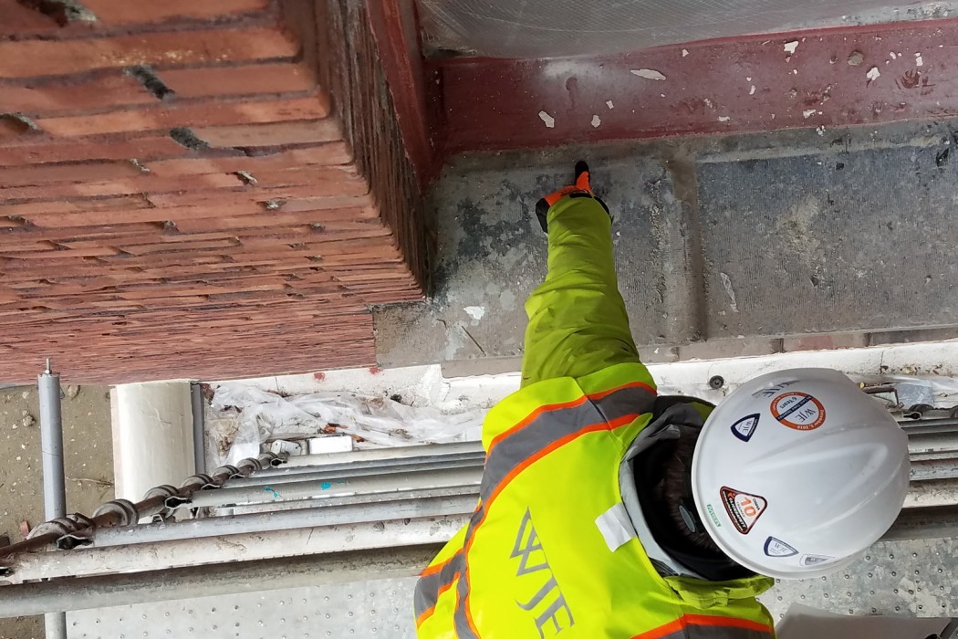 WJE’s hands on and practical approach included up-close evaluation of mock-ups and installed systems and working directly with Bassetti Architects and the general contractor, Lydig Construction, to overcome the challenges of transitioning modern flashings and weather resistive barriers into existing historic materials. When the construction team found the historic brick and terra cotta substrate at window openings too rough and irregular to accept the specified stainless steel and self-adhered membrane flashing, WJE worked with the contractors and supplier technical representatives to implement a fluid-applied window flashing material that allowed for a seamless transition between new and existing elements.