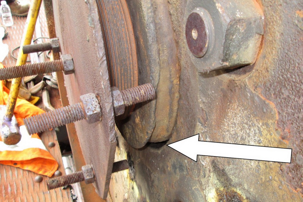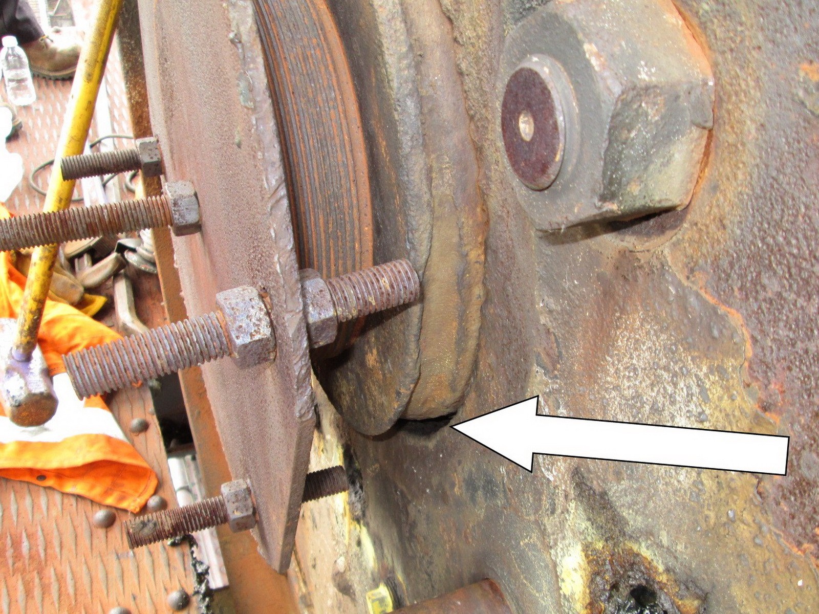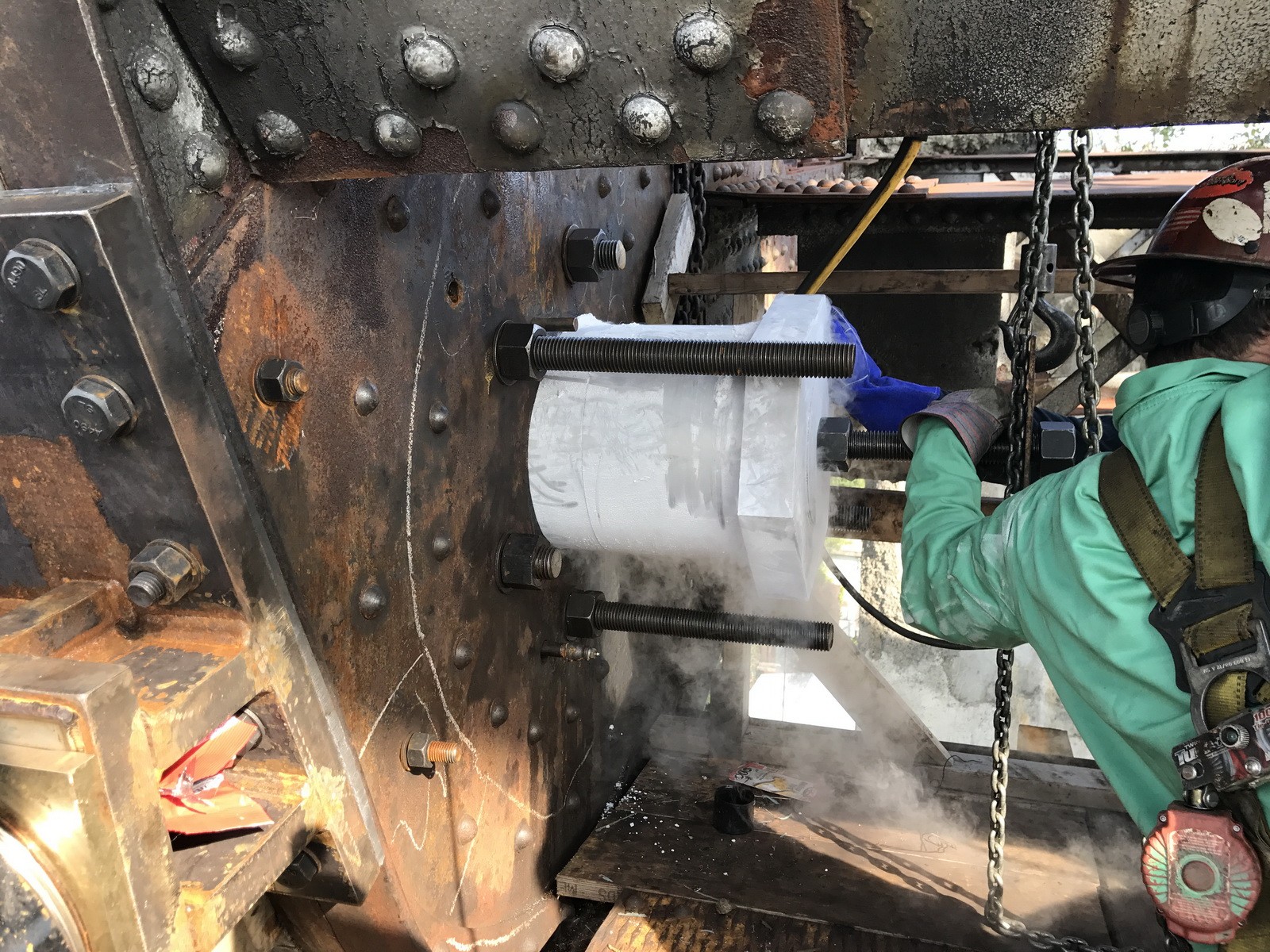 WJE provided an emergency response to investigate an issue affecting operation of the bridge. The north rack and pinion teeth were “skipping” which prevented the movable span from opening. While WJE was able to diagnose the cause of the skipping and quickly implement a temporary repair to resolve that issue, a limited mechanical inspection identified that the north counterweight trunnion was in poor to critical condition due to severe wear at the span to pin connection, fractured sleeve retaining bolts, and misaligned lubrication ports.