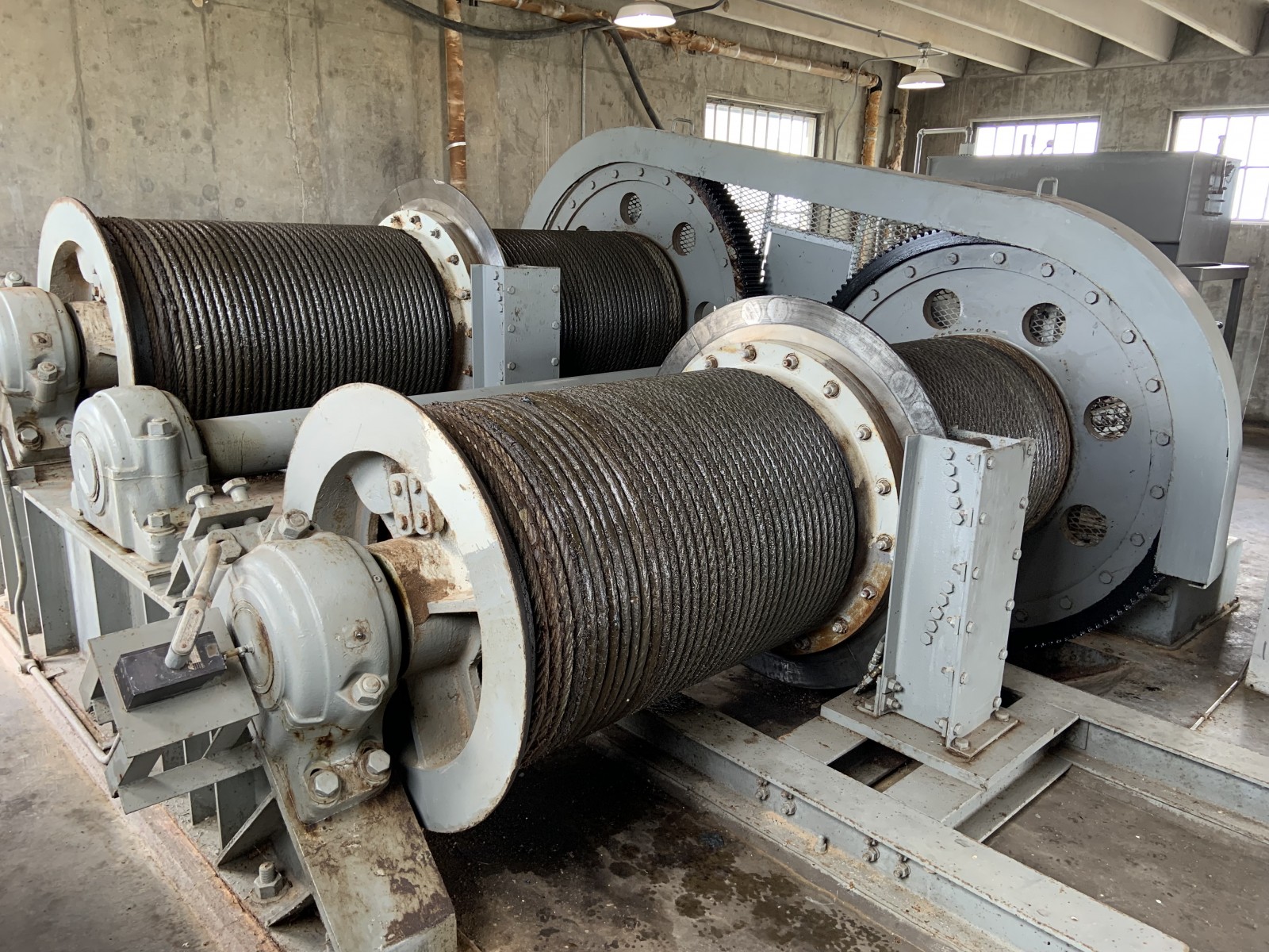 The lower ten feet of the gate were replaced in 2005, and a new coating system for structural steel components was installed. Repairs in 2016 and 2019 replaced bearings, races, and seals at the cable pulleys at the top of the gate and addressed damaged sheaves. Galveston County was awarded funding from the U.S. Army Corps of Engineers (USACE) to help ensure the continued functionality of the Texas City Hurricane Levee. The County used part of this funding to address the Tide Gate’s failing coating and corrosion at the lower portion of the gate.