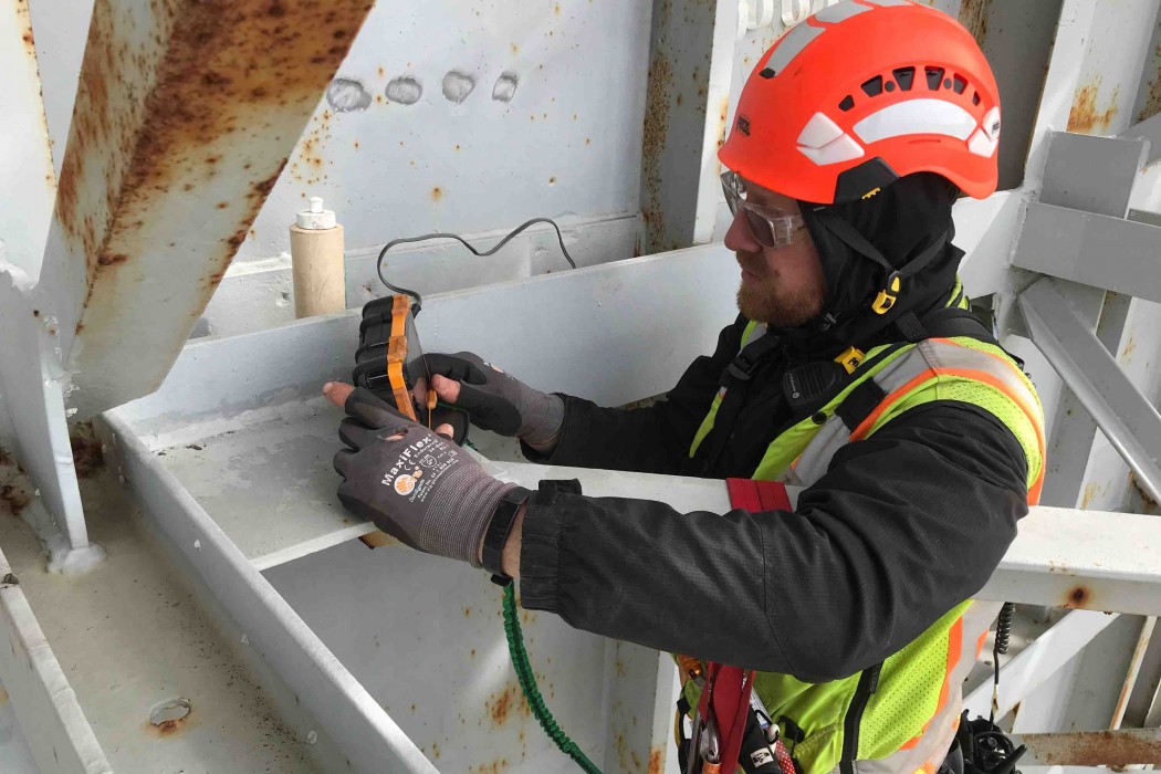 WJE performed a structural steel, mechanical, and electrical assessment of Tide Gate. The steel structure assessment consisted of an above-water, arms-length visual survey of the structural steel framing and the associated coating system of each tower, bridge, and liftgate. The coating investigation included nondestructive evaluation techniques and material extraction for laboratory study. The field assessment was performed from the ground level and accessible portions of the structure by rope access techniques.