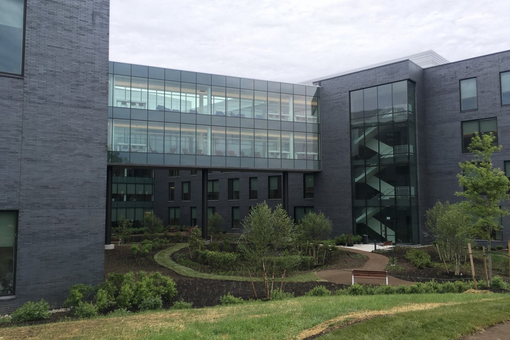 Penn Medicine Radnor is a new 250,000-square-foot, four-story multispeciality ambulatory center. The project budget was $200 million. The U-shaped building was designed to filter natural light through an open courtyard, and its wings are joined by an elevated pedestrian bridge. The building received LEED Gold certification.