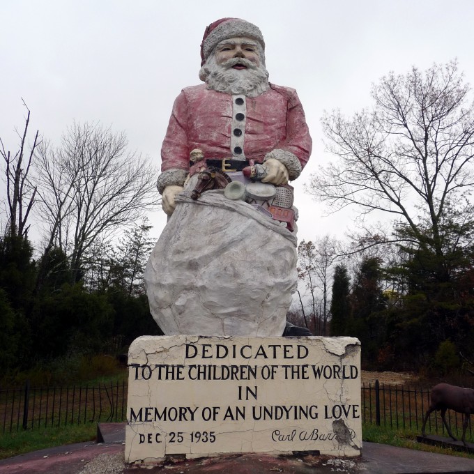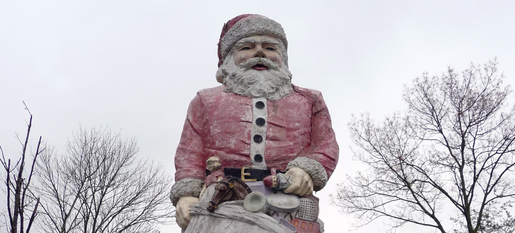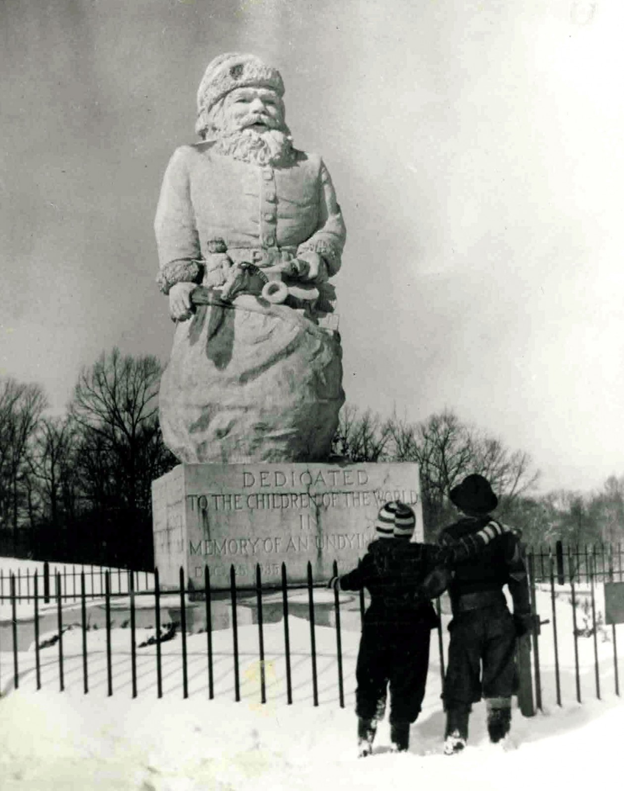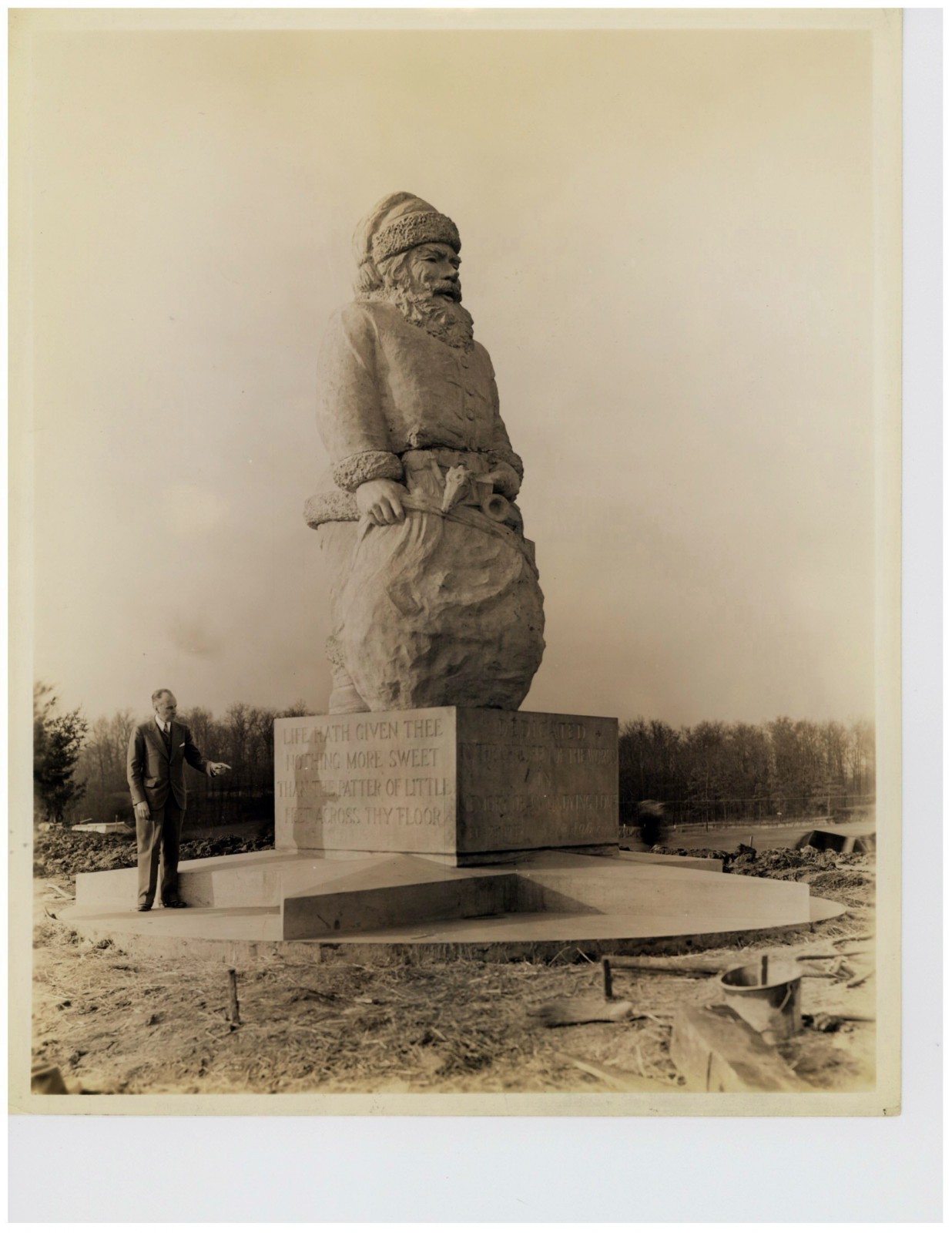 The Santa Claus statue was designed and constructed by Ralph Fletcher Seymour of Chicago, Illinois, for Carl A. Barrett of New Harmony, Indiana. Created in Chicago, the statue was transported to Santa Claus, Indiana, where it was erected and dedicated on Christmas Day in 1935. The statue is approximately twenty-two feet high and was cast in several sections with a hollow interior.