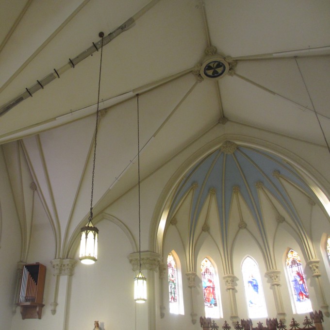 Cracking and displacement of the plaster ceiling was observed by the parish. The Church retained a general contractor, Janotta & Herner, Inc. (JHI), to investigate and repair the plaster distress. JHI retained WJE to perform an investigation to determine the cause of the plaster failure. After completion of the investigation phase, JHI then retained WJE to design reinforcements for the plaster ceiling framing.