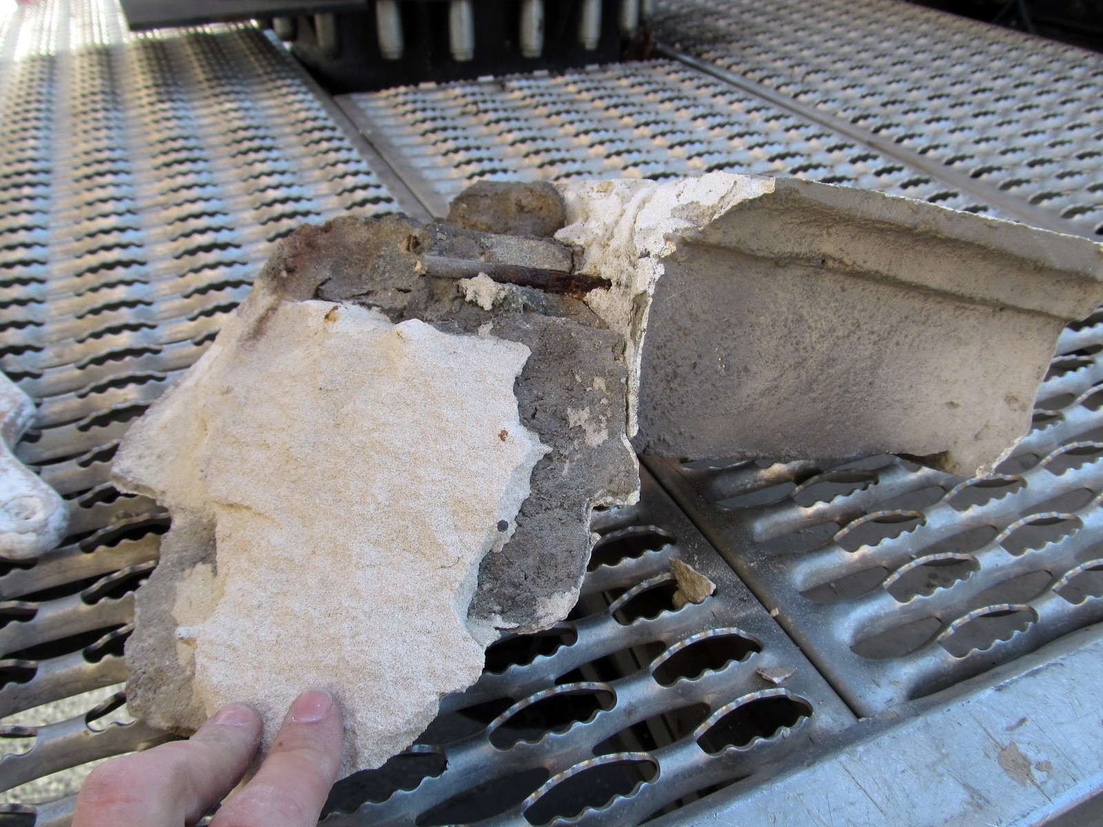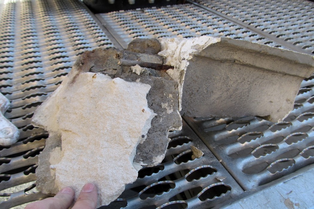 WJE visited the building to review the configuration and conditions of the facade and met with hotel engineering and management staff. Documents relating to the overall configuration of facade elements and recent repairs were also reviewed. WJE performed a 100 percent visual review of the facade using binoculars and identified distress conditions in the facade, including cracked, delaminated, and spalled materials. Subsequently, working with a local contractor and in coordination with hotel operations, WJE utilized an aerial lift to inspect and sound suspect conditions up-close. Material that posed an overhead fall hazard was removed.  Close-up inspections were targeted to areas where WJE observed imminent conditions and zones with high pedestrian traffic.