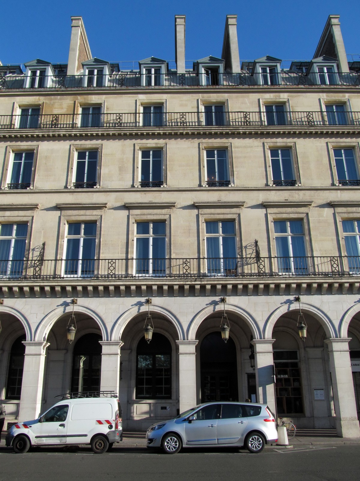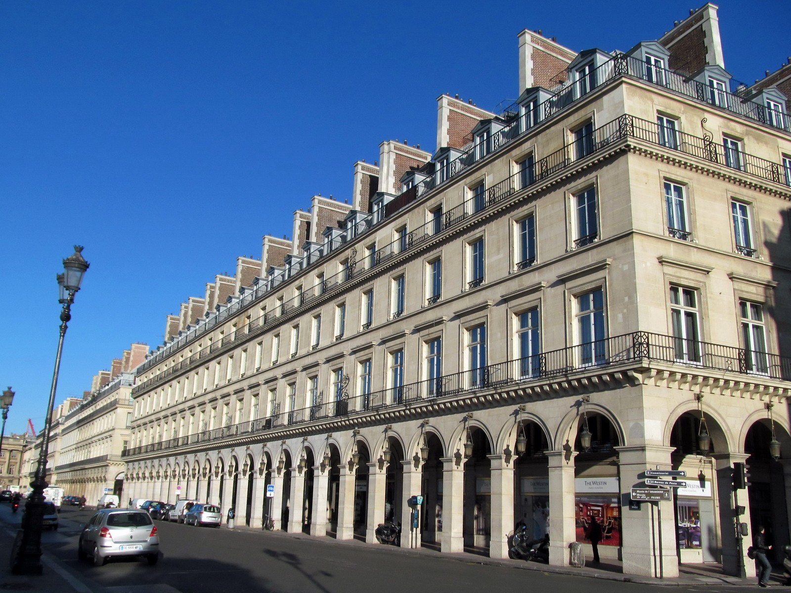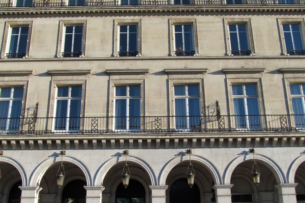 The Westin Paris Vendôme is a six-story building located on busy Rue de Rivoli and near to historic Place Vendôme in central Paris. The facade consists of cast concrete balconies, punched windows, and dormer style windows that extend out from the standing seam copper roof at the upper floor levels. There are also decorative hood molds over windows, water table courses, and other horizontally-oriented decorative features. The facade is clad primarily in stone masonry, though the balconies and decorative features consist of a cementitious material that has been painted to match the stone color.